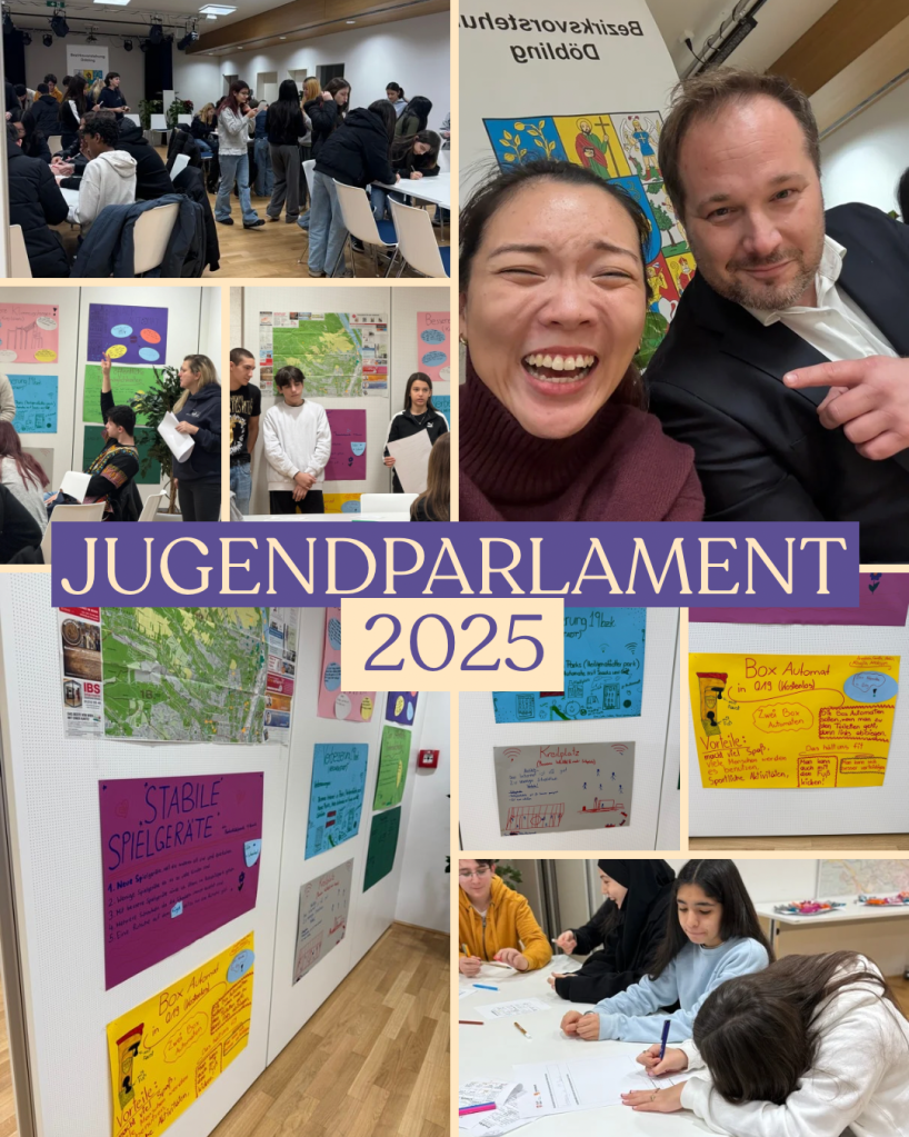 Also: wer soll eingebunden werden? Nur Schulen? Aber was ist dann mit den Kindern, die in Döbling wohnen, aber nicht in die Schule gehen? Welche Formate passen uns am besten? Soll es ein fixes Budget dafür geben, oder lassen wir das mal offen? Sollen die Jugendlichen in diesem Prozess auch gleich lernen, wie man mit Geld umgeht, oder fokussieren wir uns mal “nur” darauf, dass sie uns ihre Ideen offiziell mitgeben können, und wir schauen dann im Rahmen der Bezirksvertretung, was möglich ist? Irgendwann drehten sich die Diskussionen schon im Kreis, und ich habe dann beschlossen, direkt zum Bezirksvorsteher zu gehen und zu verlangen, dass jetzt was passiert.